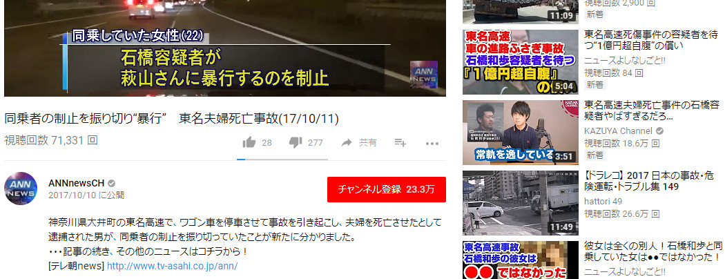 94 匿名さん 17/10/15(日) 09:59 ただ被害者と石橋の過失は重大だということは言える。 被害者に過失が無いという判断の可能性も無いとは言えない。 停車が不可抗力であったと裁判で認定されたら過失ゼロ。 何故その場所で停車しなければならなかったのかと言う要因が焦点となる。
