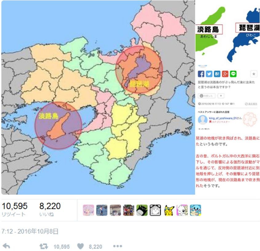 琵琶湖は淡路島のがぶっ飛んだ後に出来たと言うのは本当ですか?