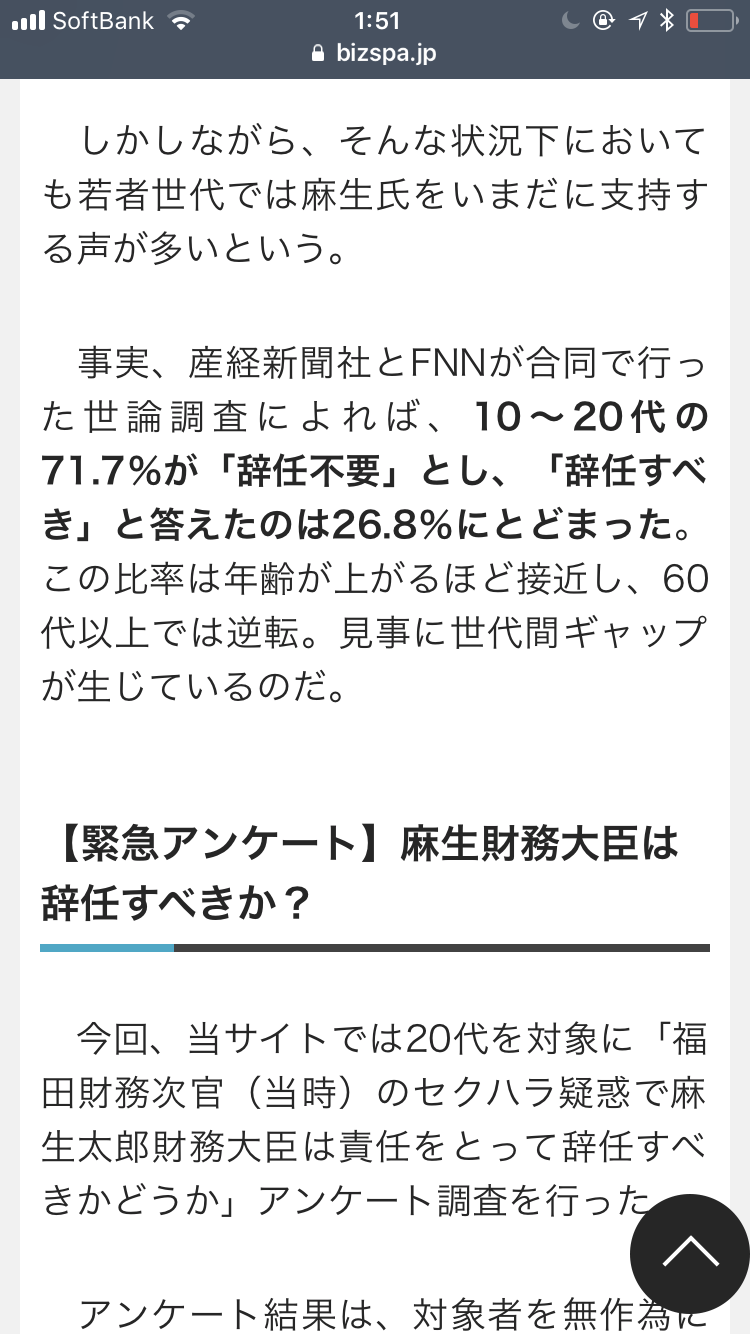 122 匿名さん 18/05/20(日) 11:16 >>118 何処が出したって数字じゃなく年齢 ここ数年~10年の政治しか見たことの無い10代20代の社会人として経験が浅い年齢でアンケート取って 辞任が必要かと回答できるのかって話 10代は中高学生、政治についてなんて教科書程度が殆どでしょう 20代のアンケートは本当に29歳まで含まれているのか? 22歳くらいまでの大学生だけならあまり参考にならないと思う