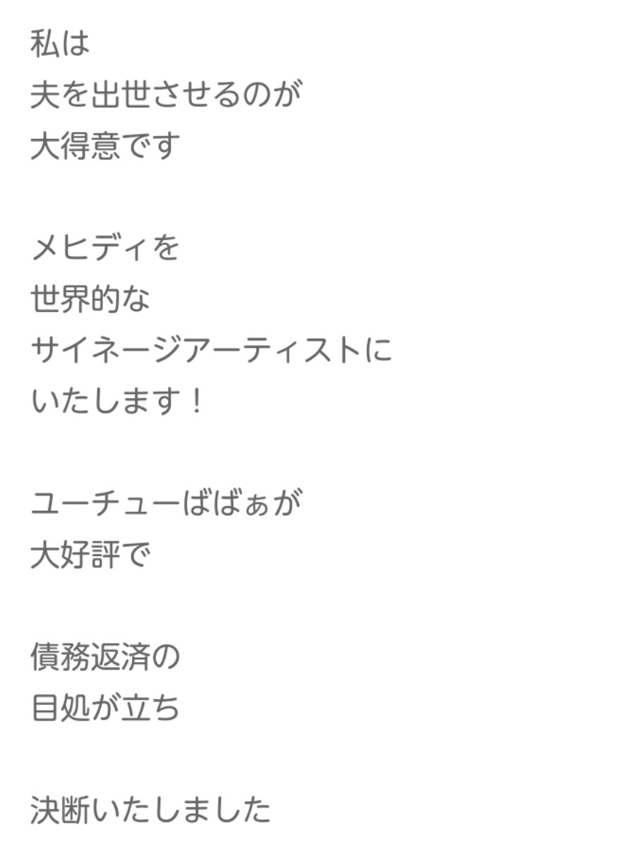 59 匿名さん 18/05/28(月) 18:42 >>58 できてないよ。ファンからも金騙しとって訴えられてて今までホームレスで車で生活してて一昨日くらいにやっとアパート借りれたみたいよ。 今日で芸能活動引退とかブログに書いてあったけど何回聞いたことか。 メィヒディの内助の功になるためだとか(笑) メィヒディはきっと泰葉のことなんとも思ってなさそう。ラインのやりとりとか載ってたけどスタンプだけのお互い会話だし…