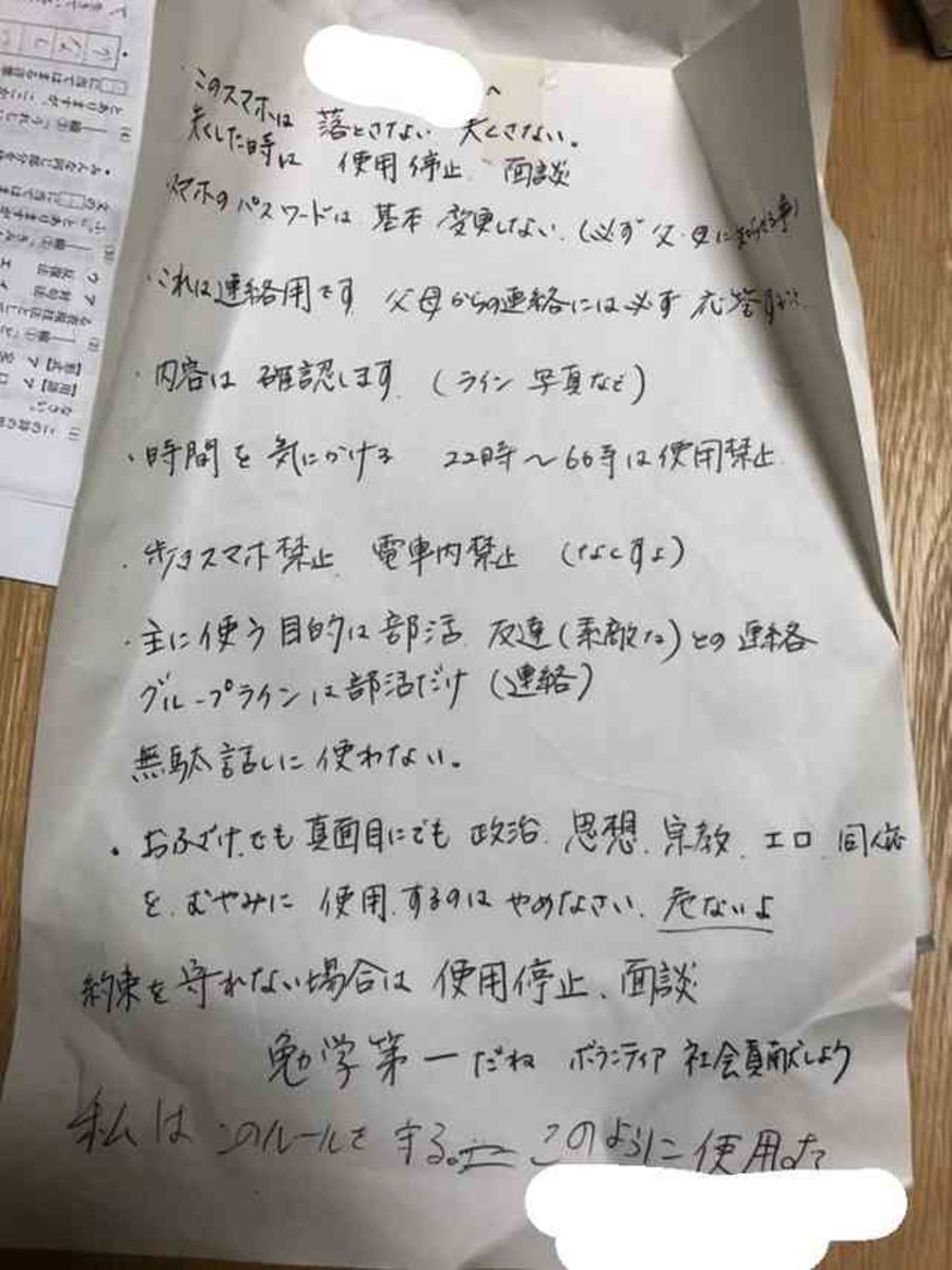 もふひつじさん提供 スマホ契約にあたり母親から厳しすぎる条件を突きつけられた中学生の投稿がSNS上で話題になっている。 投稿の主は関東在住の私立中学生という「もふひつじ」さん。 もふひつじさんが暴露した画像によると誓約書の条件は 「...