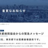 医療崩壊を回避するには、「感染者数を短期間で激減させるしか方法はない」として、「緊急事態宣言やロックダウンに匹敵する極めて強力な対応を行うことが不可欠」と訴えている。「東京は医療崩壊直前」 都病院協会が緊急メッセージ【新型コロナ】