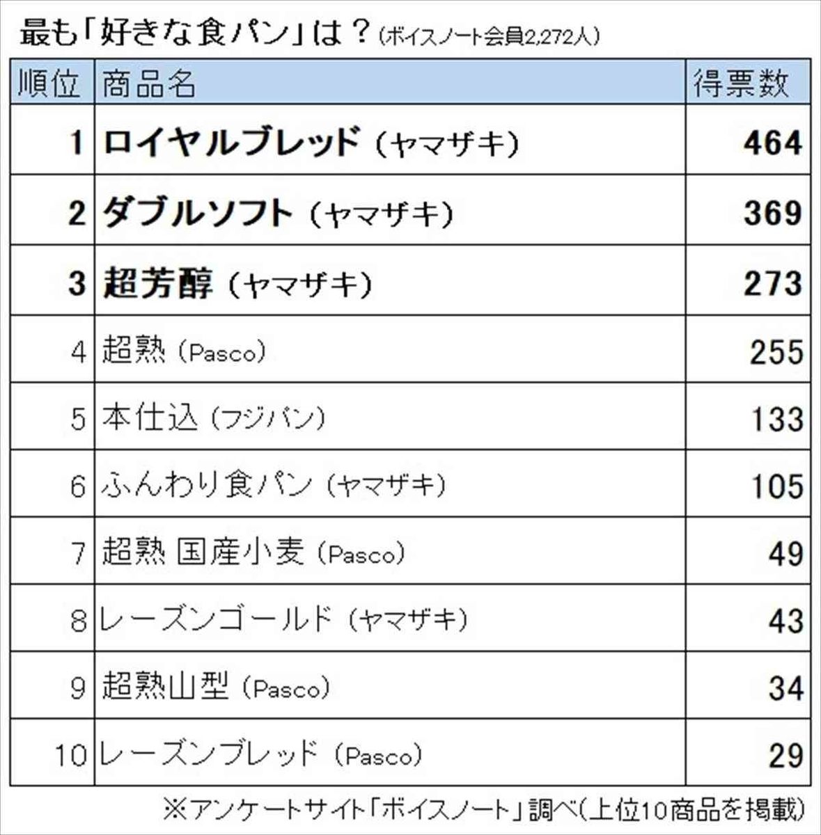 ã©ã³ãã³ã°1ä½ã«è¼ããã®ã¯ãããã¤ã¤ã«ãã¬ãã(å±±å´è£½ãã³)ã(464票)ãè¯è³ªãªä¸ç´å°éº¦ç²ã¨ãã¿ã¼ã使ç¨ãããã¿ã¼ã®é¢¨å³ã¨ã³ã¯ã®ãããã£ã¨ãã¨ããé£æãæ¥½ããããåçè ããã¯ãããã¼ã¹ãããã¨ãã¿ã¼ã¨å°éº¦ã®é¦ããçµ¶å¦ã«ããããã¦ãã¦ãç¾å³ããã¨æãã¾ãããæé ãªä¾¡æ ¼ãªã®ã«ãã®ã¾ã¾ã§ãç¼ãã¦ãæ¨ããããã¨ãã£ã声ãå¯ãããããå¸è²©ã®é£ãã³äººæ°ã©ã³ãã³ã°ã1ä½ã«è¼ããã®ã¯?
