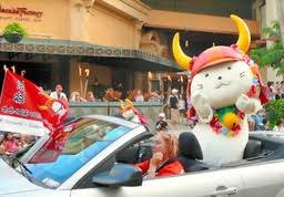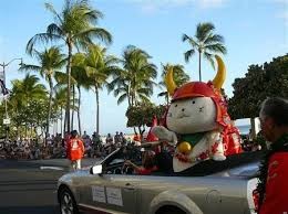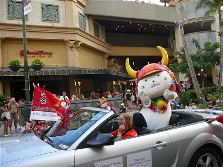 滋賀県彦根市のキャラクターひこにゃんが海外デビューを果たした。7日午後(日本時間8日午後)、米・ホノルル市の祭りに参加し、オープンカーでパレードした。 昨年彦根市で開かれた「井伊直弼と開国150年祭