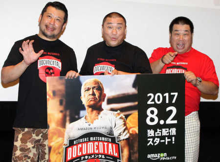 「極楽とんぼ」の山本圭壱(49)、ケンドーコバヤシ、「プラス・マイナス」の岩橋良昌(38)が、2日にアマゾン・プライム・ビデオで配信がスタートしたバラティー番組「HITOSHI MATSUMOTO Presents ドキュメンタル」シーズン3の完成披露イベントを都内で行った。 ダウンタウンの松本人志(53)が招待したお笑い芸人10人が、1人100万円を持って参加。制限時間6時間で笑わせ合い、松本が笑ったと判定された時点で即退場となり、最後まで残った1人が賞金1000万円を総取りする内容だ。 不祥事で約10年間謹慎し、2015年から仕事復帰していた山本は、「やっと仕事らしい仕事をしたなという気持ち。芸人さんがあれだけ集まる所に寄せていただいて良かった」と感慨深げ。だが、コバヤシがあえて「何かあったんですか?」とツッコんだ。 松本からの招待状は突然渡されたそうで、「番組の打ち合わせと言われた席で、座るやいなや入ってこられた。断る理由はない。その瞬間、相手が誰かを想像したが、何も出てこなかった」という。相方の加藤浩次(48)に対策を相談したが、「“やるしかねえだろう”で終わり、1歩も前に進まなかった」と苦笑いで振り返った。 出演する10人は互いに収録当日まで知らされず、コバヤシは「スタジオに入ってからもトイレ統制が厳しくて、しかも番号で呼ばれた」と述懐。そして、「山本さんが入ってきてビックリ。プライベートでは会っていたけれど、仕事でこんな再会やとは思っていなかった」と話していた。極楽・山本 松本人志からの番組“招待状”に歓喜「やっと仕事らしい仕事をしたな」(スポニチアネックス) - Yahoo!ニュース
