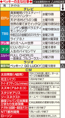 ベッキー休業へ、レギュラー11本中5本出演見合わせ…30日会見予定も一転白紙に