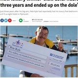宝くじ当選者の話題は少なくないが、大金を前にすると目先の判断がつかなくなってしまうのだろうか。英プリマスの男性は、「The National Lottery(国営宝くじ)」に当選し日本円にして7億円以上の大金を手にするも、わずか3年で使い果たしてしまったという。現在は行方がわからなくなっているこの男性について