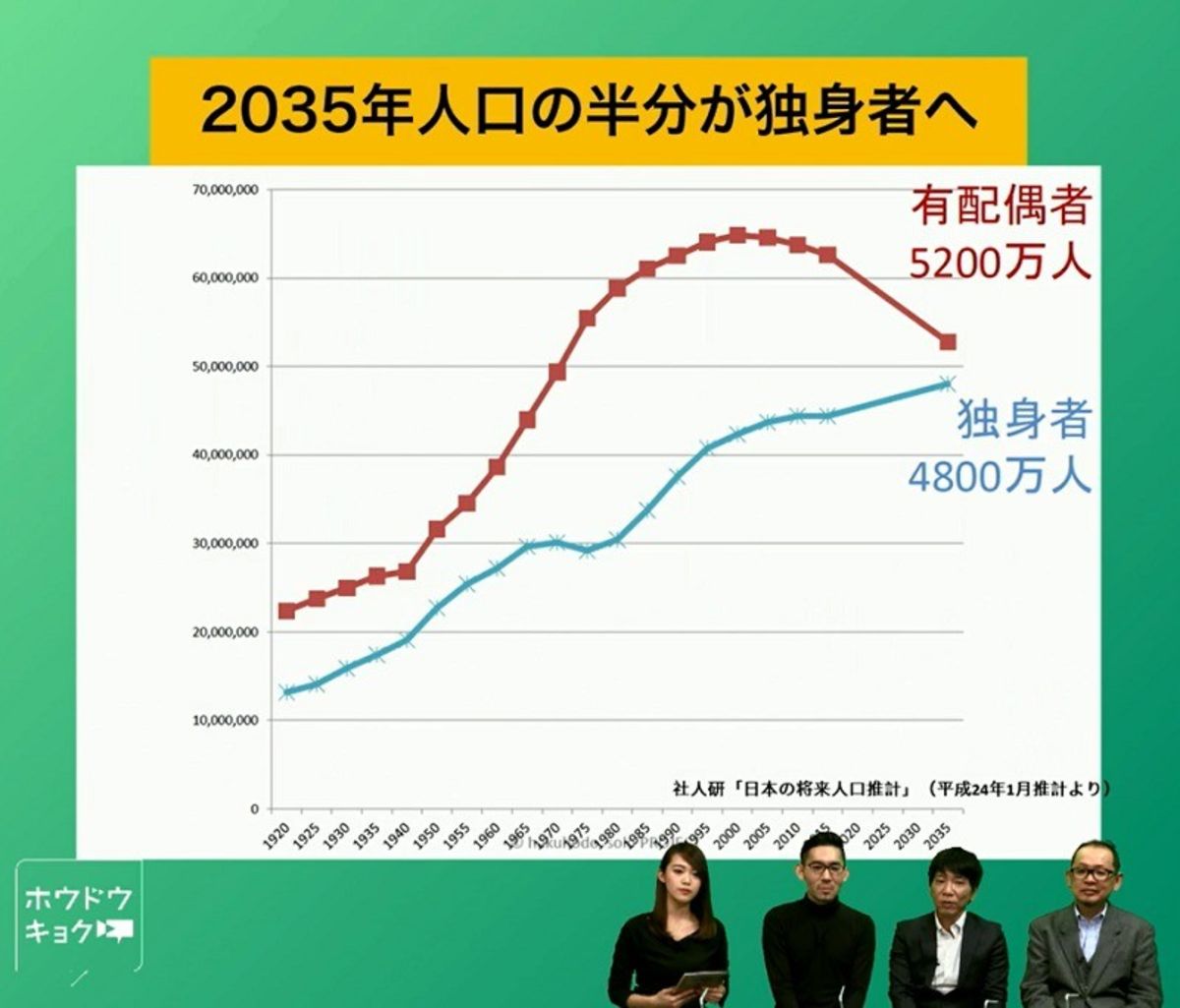 18年後には人口の半分が独身者、ということです。