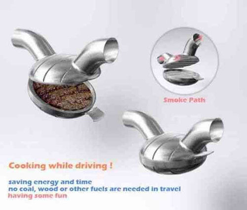 車の排気熱を利用したハンバーグ焼き器。 (エコとか以前に、食べたら死にそう)