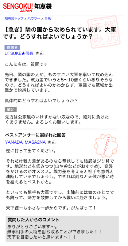 「桶狭間の戦い」を知恵袋風にしてみた。