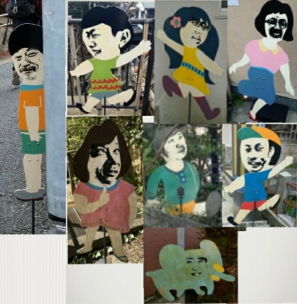 有馬温泉にある 京都出身アーティスト小川しゅん一氏による「飛び出し坊やたち」という作品。