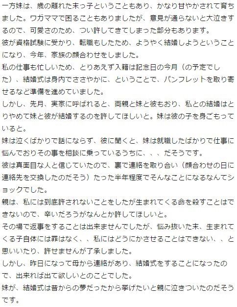 妹が寝取るというより自分の彼がクズなんだと思うが。