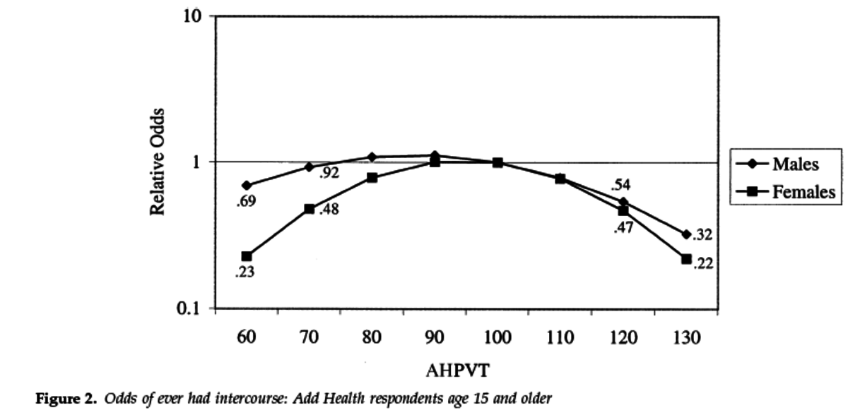 正確には、IQが高すぎる場合と低すぎる場合で性交渉経験率が変わる傾向が確認できたとのこと。適度なレベルのIQでないと何か支障が出ると言うことなのでしょうか……?