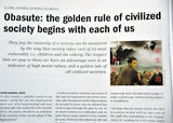 問題のコラージュは、カザフスタン出身の国連職員が執筆した「オバステ」という英文記事に添えられていた。記事は長年勤めた元職員の待遇について触れ、1958年の木下恵介監督の映画「楢山節考」で描かれたうば捨てのようにならないように、と警鐘を鳴らしたものだった。 コラージュには日本語で「麻生太郎 姥(うば)捨て」と記されていた。ネット上の素材を転載したものとみられ、作者や意図、作成時期は確認されていない。 編集部関係者は、日本語のわからない外注のデザイン担当者が無作為に採用したもので、意味も知らなかったと説明。麻生氏が日本の元首相ということも認識していなかったという。「姥捨て」題材コラージュに麻生氏の顔写真 国連公認誌 - ライブドアニュース