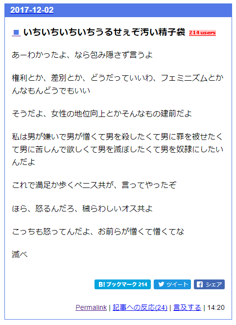 フェミババァがネットで本性現す