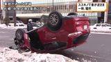 朝のススキノ 赤い車がひっくり返る 一時運転手見当たらず 札幌市中央区
