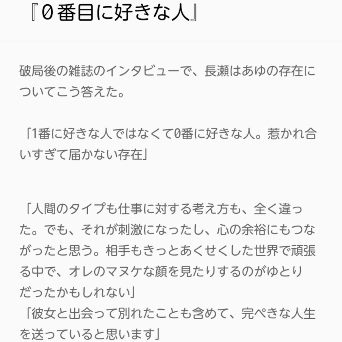 いまのアユは嫌いだけど、当時はどっちも好きだったしお似合いだと見てたから悲しいね。 長瀬君の心を掴みたい女性はたくさんいるだろうけど硬派だし難しいだろうね。