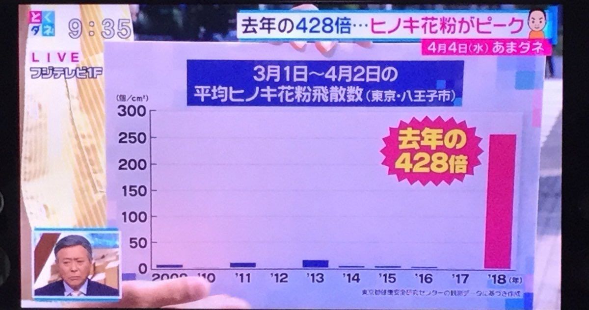 8 匿名さん 18/04/04(水) 19:52 去年の4月2日まではヒノキ花粉がまだ飛散してなくて 本格的に飛散したのが今年より遅かった、てだけの話。 今年は早々に夏日なんかが来て一気に花粉が舞った。