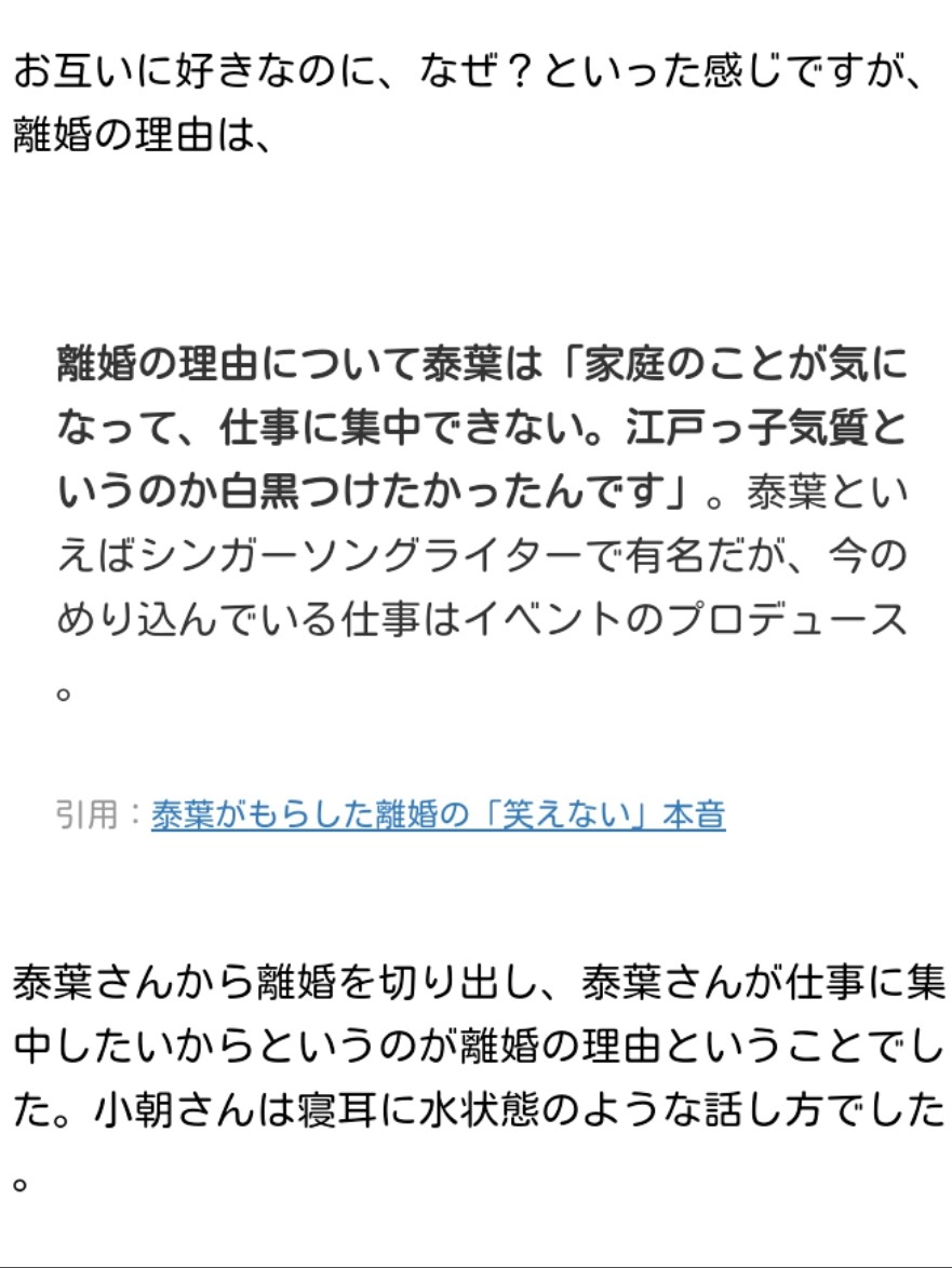 一般人との訴訟トラブルもあったし、家族の説得も聞かず小朝からの慰謝料を短期間でマイナスにするし、泰葉と関わると皆悪者になって苦労するよ。--- 泰葉がヤバイ!春風亭小朝と政略結婚も非処女がバレて虐待、自殺未遂、PTSDなので暴言で失禁、和田アキ子・海老名ファミリーはクズと発言! ---
