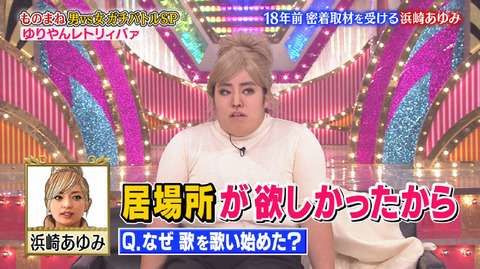 22日に放送された、「ものまねグランプリ 男芸人VS女芸人怒涛のガチバトルSP」(日本テレビ系)に、ゆりやんレトリィバァが出場。披露したものまねが物議を醸している。 ゆりやんは、「18年前に密着取材を受けていた際の浜崎あゆみ」と...