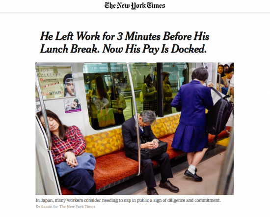 これだけ聞くとたいしたニュースには思えないが、これを受けて謝罪会見まで開かれる事態に発展。まるで重大な事故を起こしたような、深々と頭を下げる職員たちの姿になぜか海外メディアが衝撃を受けて、またたく間に海外へと拡散するに至った。 その報じたメディアも錚々たる並び。 「日本の労働者が昼休みを3分早く始めて罰せられる」との見出しが踊ったのは、イギリスの中道左派紙で硬派な報道でも知られる『ガーディアン』。 アメリカでは『CNN』が、ウェブサイトで「“サラリーマン”・カルチャー」を紹介。今回の謝罪会見の裏には、‘15年に起きた「大手広告会社での自殺」といった、より根深い問題があると分析している。 「行動経済成長の’70年代頃から“カロウシ”という表現が存在し、労働関係の運動家は’80年代から環境を変えようと動いてきた。(中略)労働者が安全に働けるよう定め、違反した企業に重い罰金を課すなど、より厳しい規制が必要だと多くの人が指摘している。しかし、安倍晋三首相の政権は、特定業種の労働時間を延ばそうという内容で賛否両論を呼んでいる、『高度プロフェッショナル制度』を可決させようと働きかけている」 また、「彼は昼休みの3分前に仕事を離れ、そして減給された」と報じたのは『ニューヨーク・タイムス』。こちらの記事は、日本国内でも「やりすぎだ」という声が挙がっていることや、『CNN』と同じく“カロウシ”という言葉や高プロ制度の仕組みを紹介している。 いずれの記事からも、「働きすぎの日本で起きた笑える出来事」というよりは、「深刻な過労問題の一部が噴出した」といったニュアンスが伝わってくる。 謝罪会見をキッカケに“カロウシ”や高度プロフェッショナル制度の問題点が指摘され、病める日本社会として世界の視線が向けられる……。単にSNSやネット掲示板でバズっているだけでなく、大手メディアが次々と労働問題と結びつけて取り上げる状況となっているのだ。 ほかに謝罪会見を開くべき人間は大勢いる こうした海外への拡散で、大手メディアだけでなく、一般人からも謝罪会見への戸惑いが溢れている。 「ニュースを見たわ! OMG(オー・マイ・ゴッド)。マジでアナタたち、ちゃんとしたほうがいいわよ」 そう筆者にメールを送ってきたのは、イギリス人女性(33歳)。こちらが説明するまでもなく、すでに報道を目にしていた外国人は少なくなかった。 「最初はジョーク・サイトのニュースかと思った。ノルウェーには30分しかお昼休みはないけど、3分早いなんてとこまで気にしないわ。日本に比べてお店が少ないから、だいたい社内のカフェテリアですませるけど、ちょっと時間をすぎたり、早く職場を出ても怒られることなんてまずない。こんなことで謝罪会見を開くのは世界でも日本だけだと思う」(ノルウェー人・女性・33歳) 昨年11月にも、定刻より20秒早く列車が出発したことで首都圏新都市鉄道が謝罪したが、起きた出来事そのものよりも、やはり謝罪会見が行われるということのほうが衝撃的なようだ。 「日本人じゃないから言えた義理はないけど、ときどきクソみたいな国だと感じるよ。(こういった謝罪会見を報じる)どの記事にも自殺防止ラインの電話番号を載せたほうがいいんじゃない? とても変だけど、ある意味“日本的”な出来事だと思う。これだけ海外でも話題になって、働いている人間も、経営者側も、国全体にも世界レベルで恥を塗っているだろう? これで神戸のおじさんが、3分早く休みをとったってことは世界中に知れ渡ったけど、福島の原発が今どうなっているかは全然伝えられない。すごく偽善的だと思うよ。こんな会見は開くくせに、政治家や大企業の重役はやりたい放題じゃないか。いきなり世界中で“有名人”になって、おじさんも可哀想だよ」(アメリカ人・男性・37歳) 日本国内でも、ほかに透明にするべきこと、報道するべきことがあるのではないかという意見は多い。先述の高度プロフェッショナル制度など、働く人間にとって考えなければならない問題は山積みだが、国会ではろくに審議もされないまま強行採決されているのが現状だ。そういったなか、今回の中抜けが大々的に会見を開いてまで謝る内容だとはとても思えない。