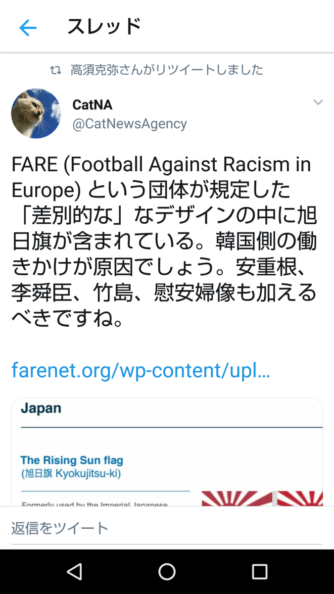 だから旭日旗が差別的とか言ってる人が一番スポーツに政治を持ち込んでる気がしてます。戦争とは無関係なスポーツの祭典なんだから。旗で場外戦してる方が違和感感じます。