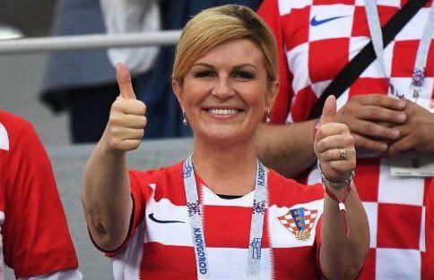 窶廩ats off to Kolinda Grabar-Kitarovic, President of Croatia. She attended every Croatia match at the World Cup, travelled in economy class and sat with the fans in the stadium. She refused to take any pay for her days not at work. Now that窶冱 leadership. #Croatia #WorldCupFinal窶