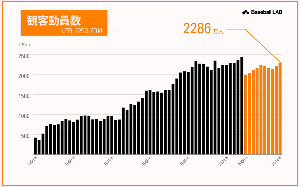 昨年、NPBの公式戦の観客動員は、2513万9463人を記録した。これは実数発表を始めた2005年以降では最多。2005年は1992万4613人だから、12年で500万人以上増加した。今回は、「観客動員」の数字についていろいろ考えてみる。