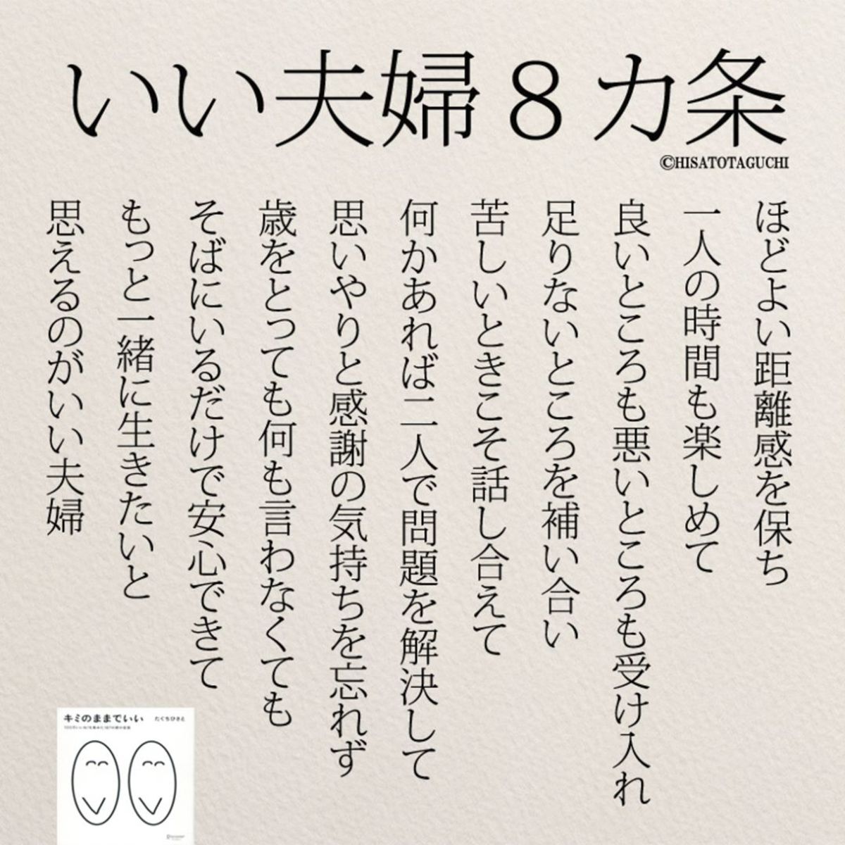 【ネットの声】 ・こういう夫婦になれるように目指す! ・素敵。夫にちゃんと「ありがとう」をいえる妻でありたいな。 ・この夫婦のありかたが理想だけれど、簡単にはいかないのが現実…。 ・難しい。たいていの人は、夫婦になる時に「こうなりたい」と思うだろうけれど、生活が長引くにつれて気持ちがひねくれてしまうのかな。8つのうちいくつ当てはまる? 『いい夫婦』の条件に、考えさせられる