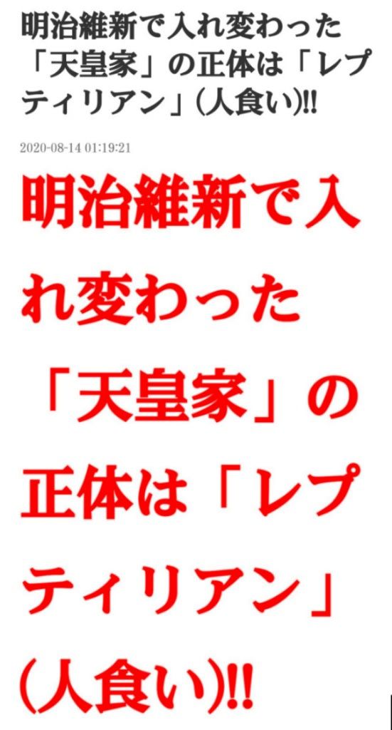 --- 天皇家の正体は【明治維新】で入れ変わった【人身売買・人食い】レプティリアン!日本赤十字という【人食い達】の隠れ蓑!正体は人身売買組織!東京の地下に巣くう【人食い達】を殲滅するためにトランプ米軍は - みんなが知るべき情報gooブログ ---