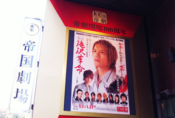 diary イラストレーター ニーヤ・アキの備忘録 滝沢革命@帝劇 2011/01/26 15:46:10 LIVE 2年前に続きまた招待券をいただいて行ってきました。帝国劇場開場100周年記念公演だそうです 110126teigeki1 前回と同じお話のような違うような…⁇時々本物の夢の世界に旅立っちゃう私には最後まで何が何だかわからず終い。(演者さんには申し訳ないけど人の声を聞きながらウトウトって何であんな気持ちいいんだろ^^;)時々近くまで宙飛んで来るタッキーが相変わらずきれいだなとか、弟役NYC中山優馬君カッコいいなとかみとれてました。途中ゴムの空中ブランコで宙をぐるんぐるん回るところと、舞台奥の滝から手前下流に大量に放水した川の流れの中で戦うシーンは圧巻でした。二人の父役、少年隊錦織が途中で渋谷哲平のdeepを歌ったのはナゼ⁈渋谷哲平てジャニーズだったっけ⁈Jr.おチビたちの1番小さい子は9才だそうですが、踊りも台詞もしっかりしたものでした 110126teigeki2 今気付いた。昼の眠気は夕べの日韓延長戦だ!90分で終わって寝る気だった私が間違えでしたw ni-ya 人生革命&滝沢革命@帝劇26日 滝沢革命 ネタばれです。☆新春滝沢革命☆ 行ってきました!滝沢革命2012~グッズ編 新春 滝沢革命 滝沢革命@帝劇 へのコメント一覧 (1) これからタッキーのyoutubeに、貼ります。タッキーが渋谷哲平さんを気に入られてるなら御本人をジャニーズ事務所に移籍していただきジャニーズシニア第一号に、なさってはいかがでしょうか!?
