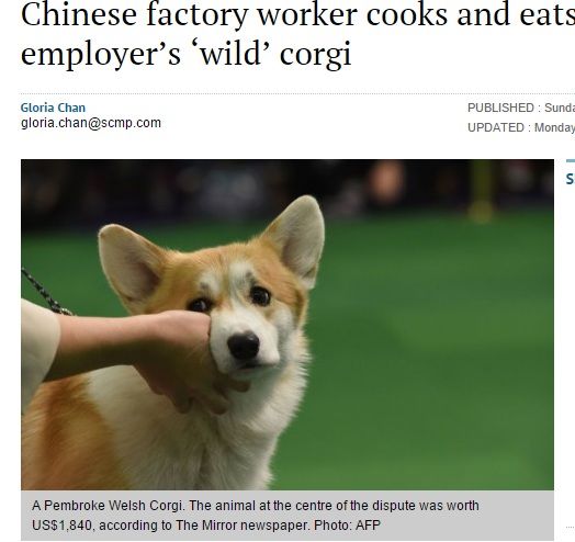 中国で、雇い主が飼う犬のコーギーを食べた中国人男性が逮捕された。「野良犬だと思った」と語る男性は犬を撲殺し、夕食で食べたという。男性は保釈金を払い釈放されたが、会社はクビになってしまった
