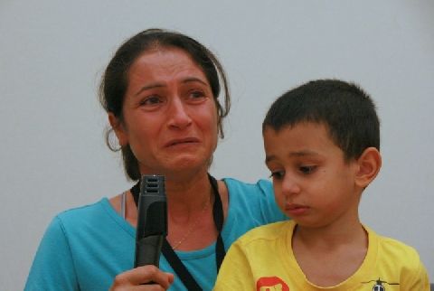 入管の施設をめぐっては、被収容者の自殺が発生するなど、その内部の環境がクローズアップされている。また、収容の長期化は、家族にも暗い影を落としている。この日の集会には、約1年8カ月間収容されているトルコ籍のクルド人男性、カラコール・オマルさん(32)の妻と子ども3人が登壇。妻のセムラさん(32)は「わたしは疲れた」と涙を流しながら語った。