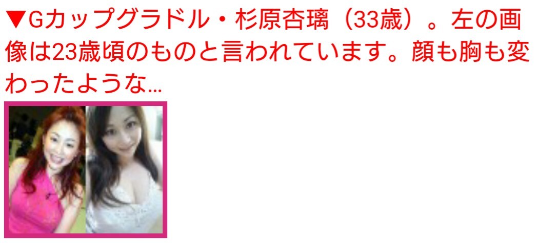 もう、整形と豊胸はやめられないのかね。 杉原杏璃。