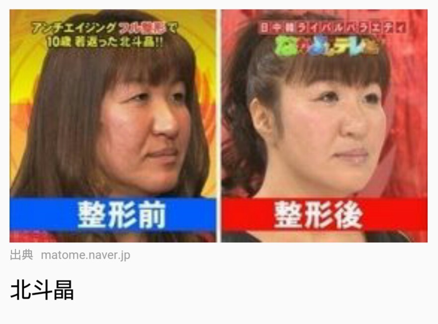 大きいね。 電車に乗っててだれも振り向きもしないブスだった。 エラと顎削った。 二重切開、目、鼻、顎、エラ、豊胸、整形モンスター。