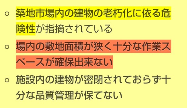 豊洲市場はこれまで土壌汚染問題が、度々、取り上げられてきたが、その汚染状況も改善されない中、ここへきて、建物そのものに対する問題が持ち上がっている。