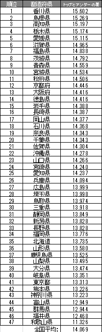 間違いだらけだな。広島はCカップ以下の貧乳が多く、長野県はFカップ以上の巨乳が多いから。