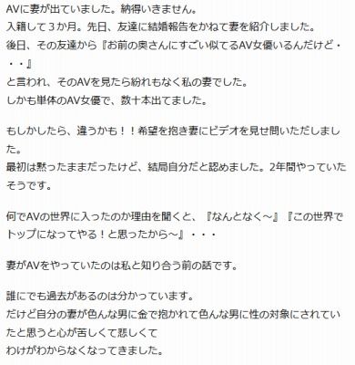 AV嬢や風俗嬢が世の中にどれだけいると思ってんの SEXが上手いから結婚したらば訳じゃないでしょ もし拘るなら、結婚前に身元調査しなかった貴方が悪い