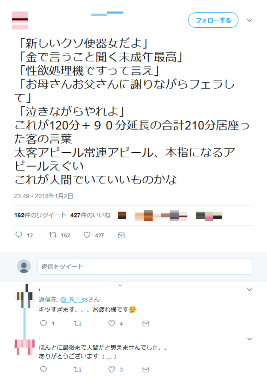 これが普通の職場だったら相手叩かれるのに風俗は嬢も叩かれるからかわいそうだわ