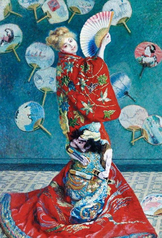 대표적인 인상주의 화가 클로드 모네(Claude Monet·1840~1926)가 아내 카미유(Camille)를 모델로 그린 대형 초상화다. 카미유는 두꺼운 원단에 험상궂은 일본 무사가 수놓인 새빨간 기모노를 둘러 입