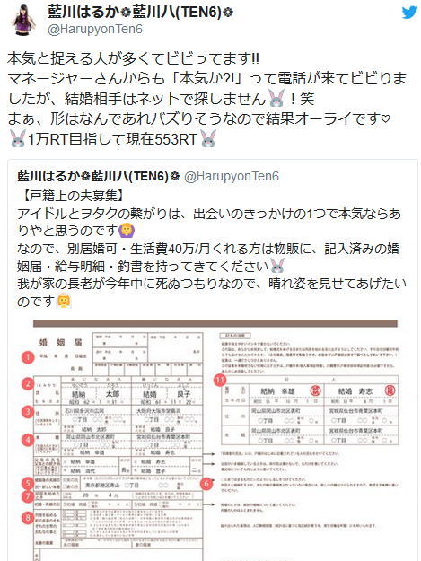 アイドルが戸籍上の夫をツイッターで募集!!「別居婚で月40万円の生活費をくれる人」 : オレ的ゲーム速報@刃