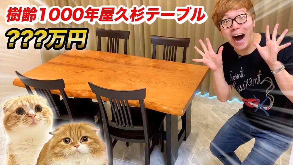 隣接した2つの部屋を借りて「6LLDDKK」の部屋に住んでいるヒカキン。この日は、メインで使う部屋に樹齢1000年の屋久杉1枚板テーブルを設置する動画を投稿。150万円もする豪華なテーブルに、ヒカキンは「この色味と年輪、これヤバくないこれ? これが1000年のパワー!」とハイテンションに。ヒカキン、高額買い物の連続に悲しみの声 「前のヒカキンに戻って…」