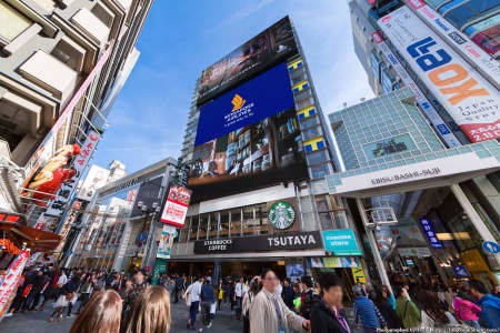 前回の記事で少しお伝えしたツタヤエビスバシ・ヒットビジョンが稼働していました。ツタヤ戎橋前の様子。ディスプレイは2面、屋上10.2m×18.6m、壁面17.3m×15.4m、総面積は上下合わせて約455㎡。日本最大級のビジ...