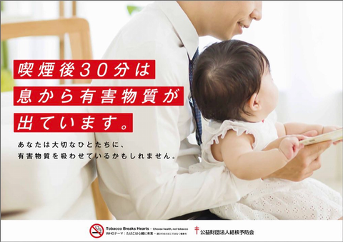 という画像。http://www.jatahq.org/tobacco_ngo/poster/2018jataposter.pdf禁煙ポスターhttp://www.jatahq.org/tobacco_ngo/tobacco-poster.htm奈良県生駒市が、喫煙した職員は「45分間、エレベーターの利用を禁止」とする受動喫煙対策を4月1日から導入する。庁内での表示で