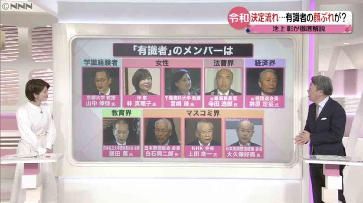 1日、ジャーナリストの池上彰が日本テレビ系ニュースサイト『NEWS24』に出演。新元号決定について解説したが、「有識者懇談会」に出席した女性有識者を「女性」と分類して紹介し、批判が殺到している。 番組内では、新元号が発表され...