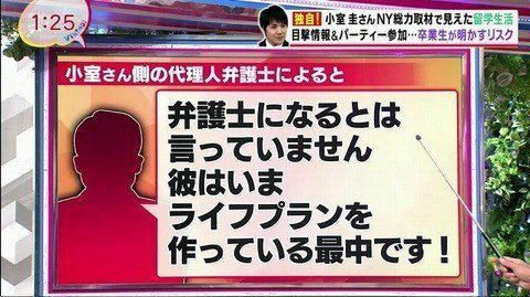 「ちょっと気になるメッセージがあるんですけど」と怪訝な表情を浮かべつつ、番組司会の坂上忍さん(51)がスタジオ内のディスプレイに視線を向けると、スタッフが聞いた話として小室さんの最新の気持ちが文章で表示された。それによると、 「(小室さんは)弁護士になるとは言っていません。彼は今ライフプランを作っている最中です」 「メディアの方は勘違いしています。小室さんは弁護士資格の取得を目指していると言ってますが、弁護士になるとは言っていません。今彼がどんな仕事をするのかは決まっていません。例えば、どこかの企業に就職するとか、もしかしたら起業するかもしれない。少なくとも今から医者になるとか農業をやるとかは選択肢にはないですが」(句読点は編集部が加筆、以下同じ) とのメッセージがスタジオ内のディスプレイに表示された。全文表示 | 小室圭さんは「弁護士になるとは言っていません」 バイキングでミッツ「今さらこんな青臭いことを...」 : J-CASTニュース