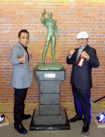 北海道新幹線の新函館北斗駅で26日、ケンシロウの銅像が披露された。同じ「北斗」が付く北斗市の知名度アップにつなげようと、市民有志が誘致。「北斗の拳」の原作者の武論尊さんは「皆さんで盛り上げてほしい」と語った
