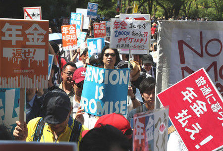 2歳の息子と加わった自営業の男性(46)は「老後に備えようにも余裕はない。報告書を引っ込めて解決するのか」と訴えた。 友人と参加した女性会社員(23)は「社会人になり、問題意識を持った。不安なまま(年金保険料が)天引きされており、きちんと説明が欲しい」と批判。「年金払え」デモに2000人=政府に怒りの声-東京:時事ドットコム