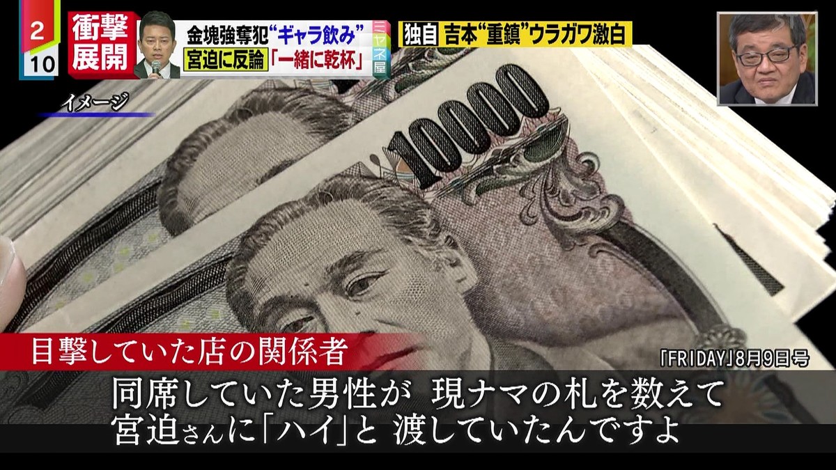 70 匿名さん 19/07/26(金) 18:51 思ったんだけど、よしもとの社長ハメられたな いつの間にか話題すり替えられてギャラやよしもとの体制の話になってる 宮迫も嘘ついてややこしくしたんだから清くよしもと退社して 1年位活動自粛して違う事務所から復帰すりゃ綺麗に終わって 一見落着だったのに、会見に持ち込んでうまいことやったな 誰か裏で絵書いてたんだろうけど