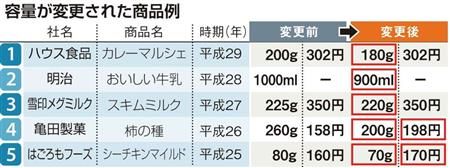 商品の値段を変えず、容量やサイズを小さくする事実上の値上げが話題に。原材料費の高騰や消費量の低迷など、メーカー側はさまざまな理由を挙げる。消費者が価格に敏感になっている社会情勢で、値上げが難しいのではと識者
